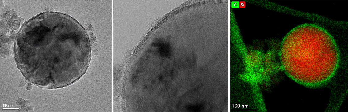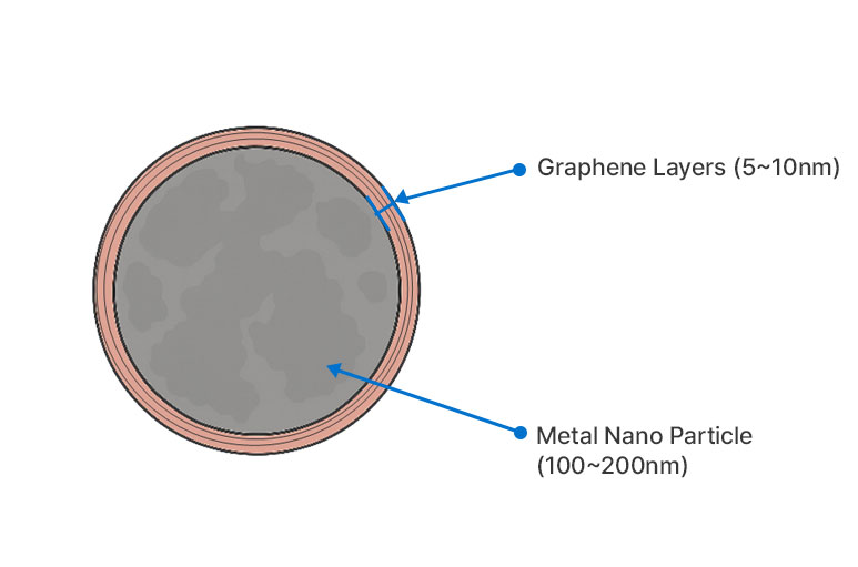 각 입자의 표면은 얇은 Graphene층으로 코팅되어 있습니다.